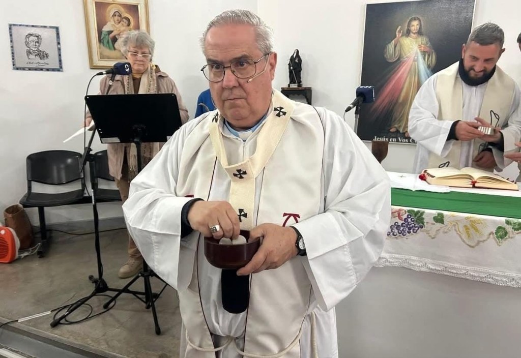 Quien orondamente preside este post es Su Eminencia Reverendísima el cardenal Ángel Sixto Rossi, S.J., arzobispo de Córdoba y Viuda Madre de todas las viudas del Papa Francisco. Podemos verlo en el momento de distribuir la comunión durante la celebración de la Santa Misa que él mismo ha presidido. No usa casulla ni amito, aunque el palio no se lo saca ni para ducharse, no sea que alguien cuestione su autoridad. Ha utilizado vasos sagrados de cerámica, no ha usado atril o almohadón para el misal y el sacerdote que se ve al fondo no ha dudado en vestir su alba sobre un suéter negro de cuello de tortuga obesa que ni Michel Foucault se animaría a lucir. Es pocas palabras, en esta misa el cardenal arzobispo ha infringido un buen número de normas litúrgicas perfectamente establecidas en el misal romano promulgado por Pablo VI.